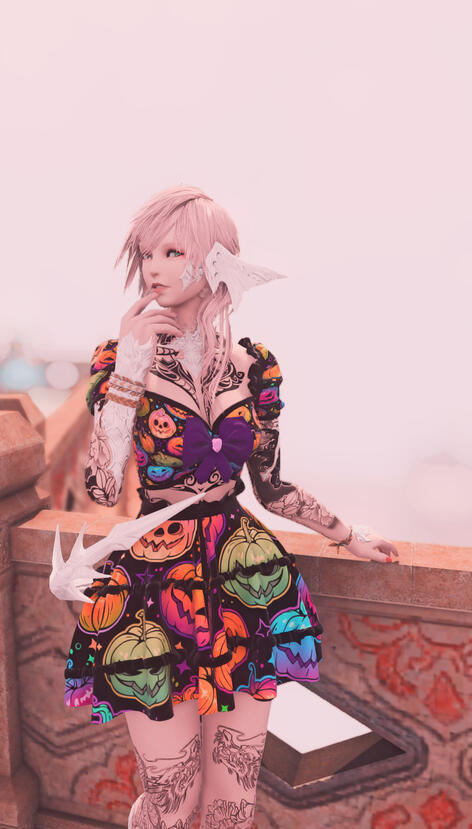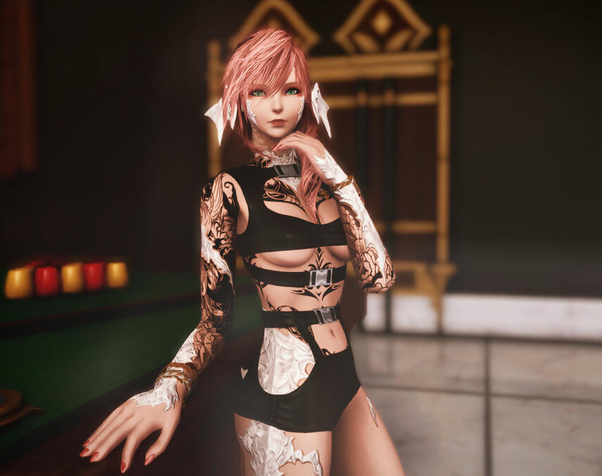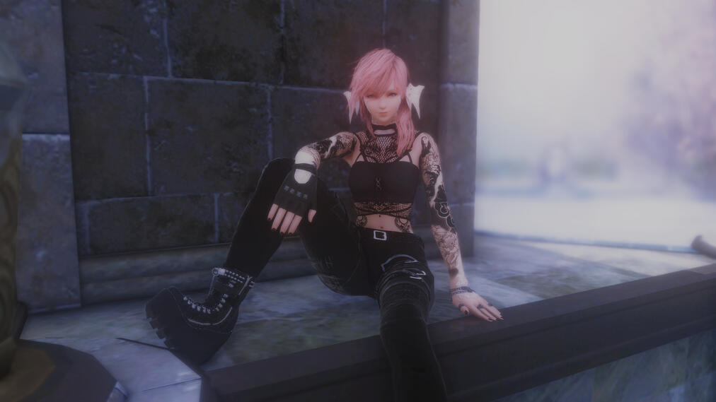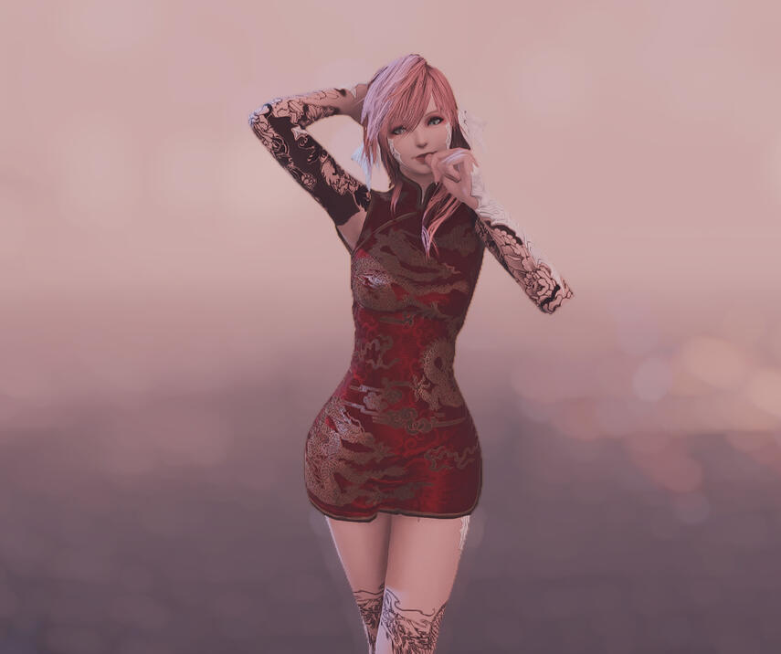 Lightning (real name Claire Farron) is a former member of the Civil Guard. She lived in Bodhum with her sister, a seaside town in Coccoon. Through her adventures, Lightning became a warrior in the service of the goddess Etro and was then elected to take on the role of Liberator, tasked with saving people's souls to turn back the clock on the end of the world.One day when she was leaving her house, she saw something in the water. Immediately Lightning ran into the water to see what it was. She discovered a naked girl unconscious and barely breathing. She had white scales and a dragon tail and beautiful pink hair.